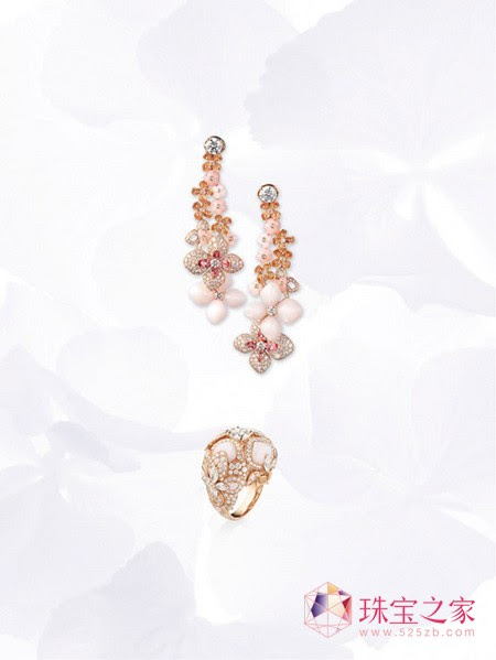Hortensia耳环与戒指,绽放一抹刚萌芽情怀的粉嫩色调