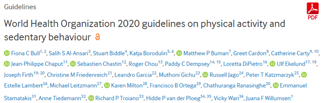 [1] Fiona C Bull, et al。, (2020)。 World Health Organization 2020 guidelines on physical activity and sedentary behaviour。 Br J Sports Med, DOI: 10.1136/bjsports-2020-102955