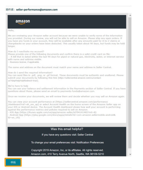 1.若您已按照要求,收集好资料并准备提交文档给亚马逊时,您可以点击业绩通知底部的"申诉"按