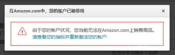 本指导适用于在以下站点销售的中国卖家:北美(包括美国、加拿大和墨西哥)、日本、澳大利亚、阿联酋和新加坡。为了帮助我们为买家和卖家维护一个值得信赖的商城,我们可能会暂停一些卖家的账户并要求获取更多信息。若您的账户因为此原因被暂停,您可以按照以下步骤提供相关信息。一.了解账户被停用的原因如果进入卖家平台出现了以下提醒,则说明您很有可能注册遇到账户停用。如果出现了这个情况,可以按照以下步骤查看自己账号被