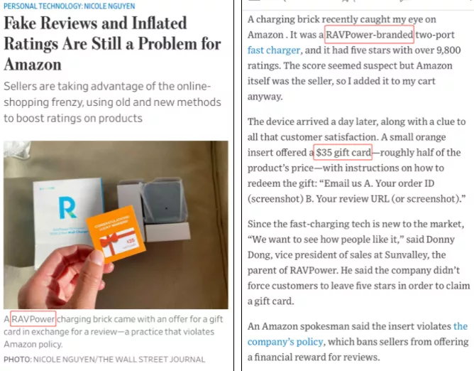 此前就是因为外媒钓鱼排查抓到了泽宝旗下品牌在产品中塞索评小卡片。直接把泽宝的索评流程写成了文章公之于众,还公开了产品中附带礼品卡的图片。