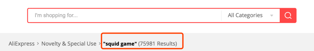 速卖通上,"squid game"成为了热门搜索词,搜索结果有近80000个