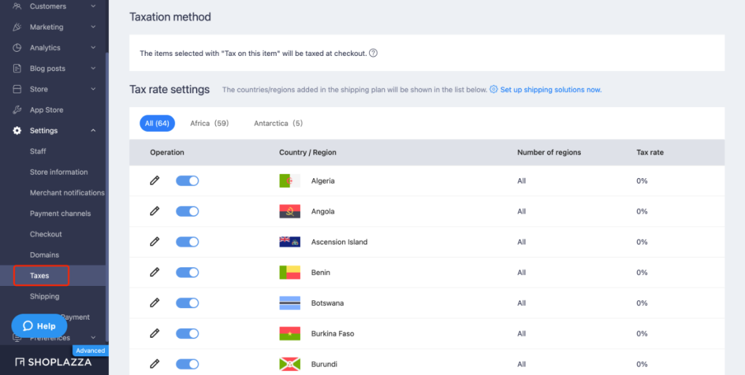 (店匠SHOPLAZZA 后台可对不同国家和地区设置税费,在结账时收取额外税款)