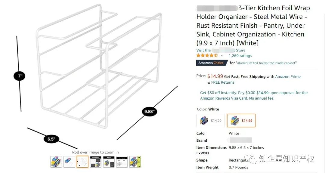 今天在浏览亚马逊的时候,看到一款保鲜盒收纳架,它是美亚站的Amazon'sChoicefor "wrap holder",售价14.99美金,留评1321颗星。