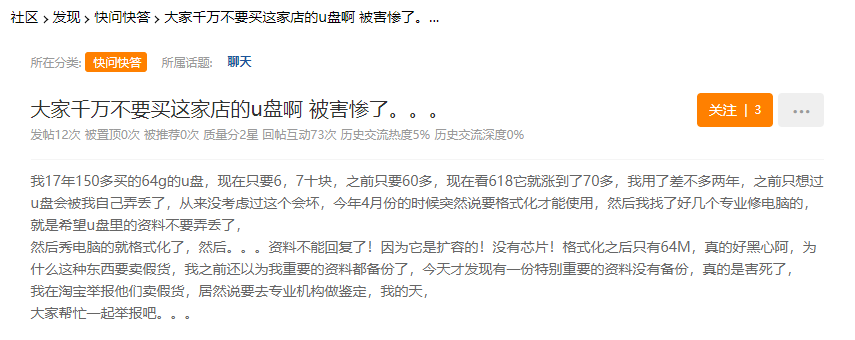 11月底的时候,曾有部门卖家曾在论坛上咨询过关于违反卖家行为准则封号的事件,当时很多卖家都曾就具体原因进行过讨论,而近日,有当时卖家披露了具体原因,此次事件的导火索竟然是涉事卖家都曾销售过一款虚标了内存参数的U盘。