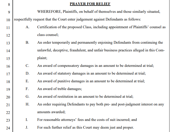 此前,曾有消费者就品牌不明确披露产品的实际蛋白质含量(原告)起诉Kodiak蛋糕产品蛋白质含量虚标案件发生,当时提出的要求如下: