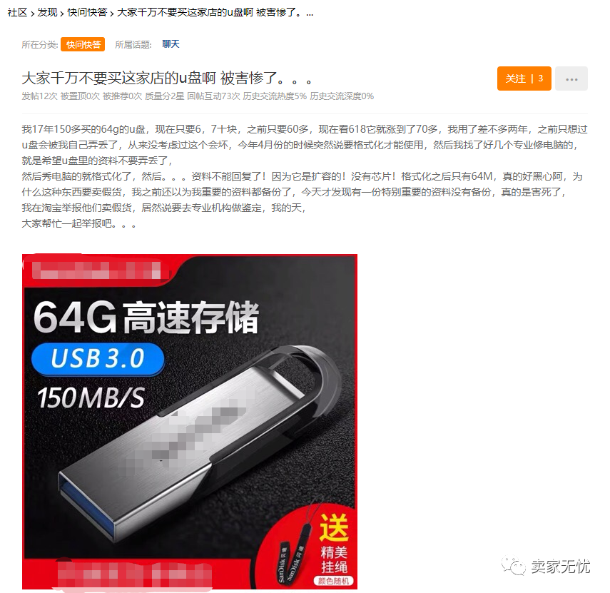 上周出现了一大批行为准则冻结的卖家,刚开始这些卖家也不清楚自己具体违规了什么才被判行为准则,经过详细的沟通后,这一批所有判行为准则冻结的店铺都有一个共同点:销售同一类型的产品--U盘/移动硬盘/内存卡,并且都是虚标内存容量(比如标1T,实际上只有512G),属于欺诈行为,所以判了行为准则!虚标内存容量的U盘又重出江湖,以前号称全球电子市场的华强北市场就曾出现销售大量的虚标内存容量的U盘/硬盘/内存