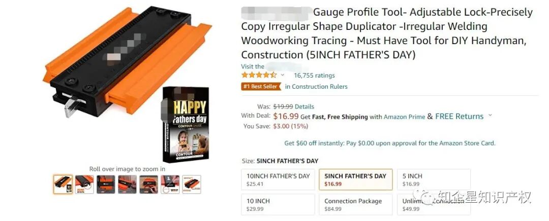 今天在浏览亚马逊的时候,看到一款轮廓规,它是美亚站的 #1 Best Seller in Construction Rulers,售价16.99美金,留评16755颗星。