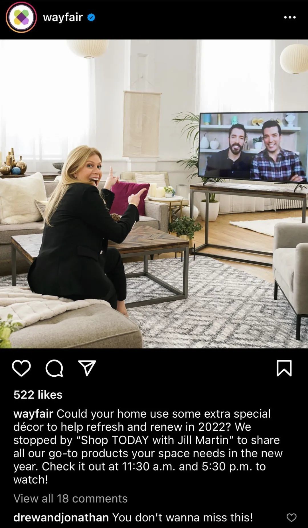 Wayfair则通过网红合作的方式,以新年焕新装饰的主题,继续拓展流量,拉动用户消费。