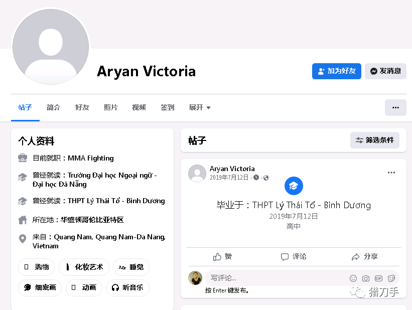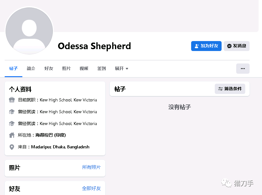 比如像这么一个Facebook账号,这个应该是最基础的Facebook账号。就是我们先注册一个Facebook账号,然后资料改一下,大体情况就是这个样子。那么旁边有一个日期,这个东西大家要有一个判断。