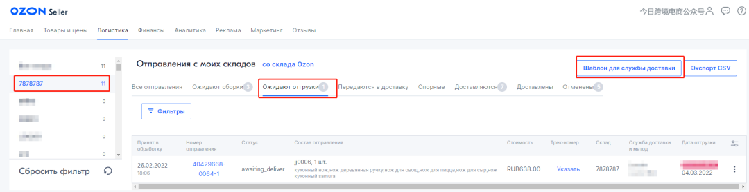 在每批货物上贴上OZON标签。标签将标明离客户最近的臭氧收集点或分拣中心的名称,它可能与买家收货的地点不同。