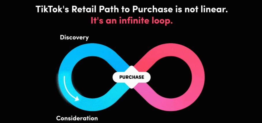 这个报告的图者是不是也看了电视剧《开端》了吗? 简单来说就是通过TikTok 社区,我们可以在用户想遇到的地方遇到我们,不在我们传统定义的漏斗中形态中。它是一个没有起点或终点的无限循环,它使品牌能够与消费者建立更有意义的关系,从而形成品牌忠诚者社区、重复购买和更多支出。