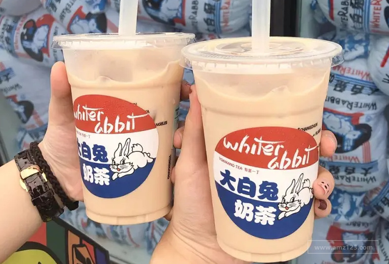 - 2019年,大白兔联合快乐柠檬在上海开设了一家"大白兔奶茶店",该店开业首日就登上微博热搜,人们需要排队四小时才能买到一杯奶茶。可见"大白兔"IP的跨界影响之大。