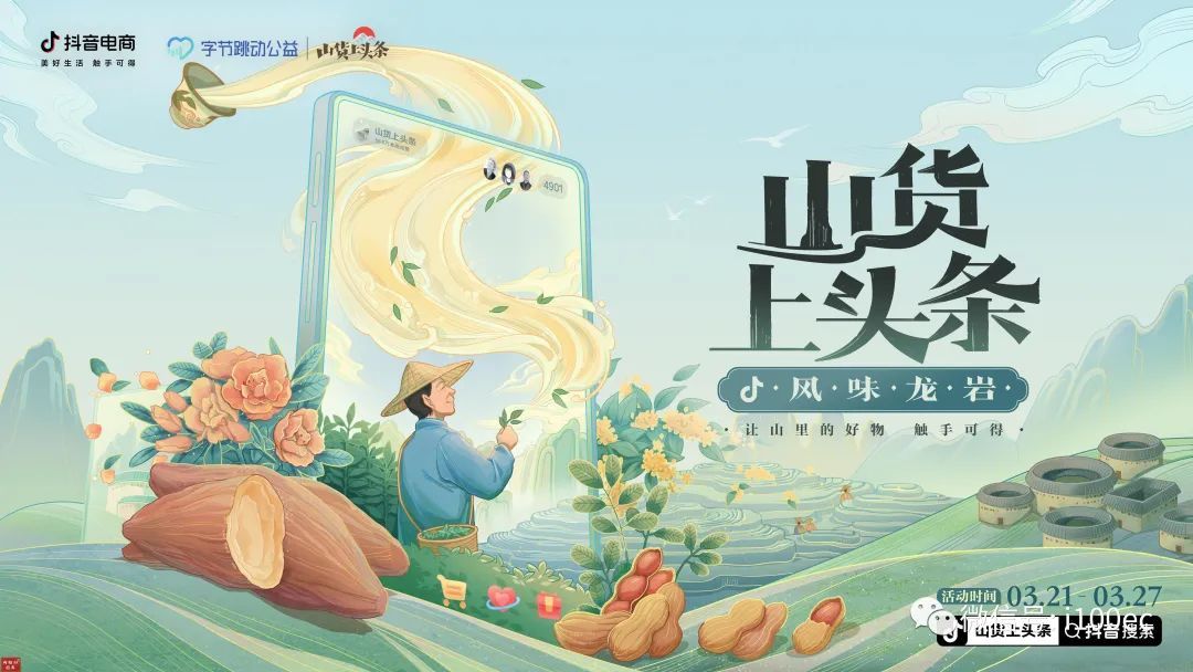 今年3月,"山货上头条"走进福建龙岩,抖音电商特设"风味龙岩"线上专区,在为期7天的线上助农活动中,"山货上头条"专项扶持共覆盖当地中小农货商家1582个,45.2万单龙岩农特产通过兴趣电商销往全国。