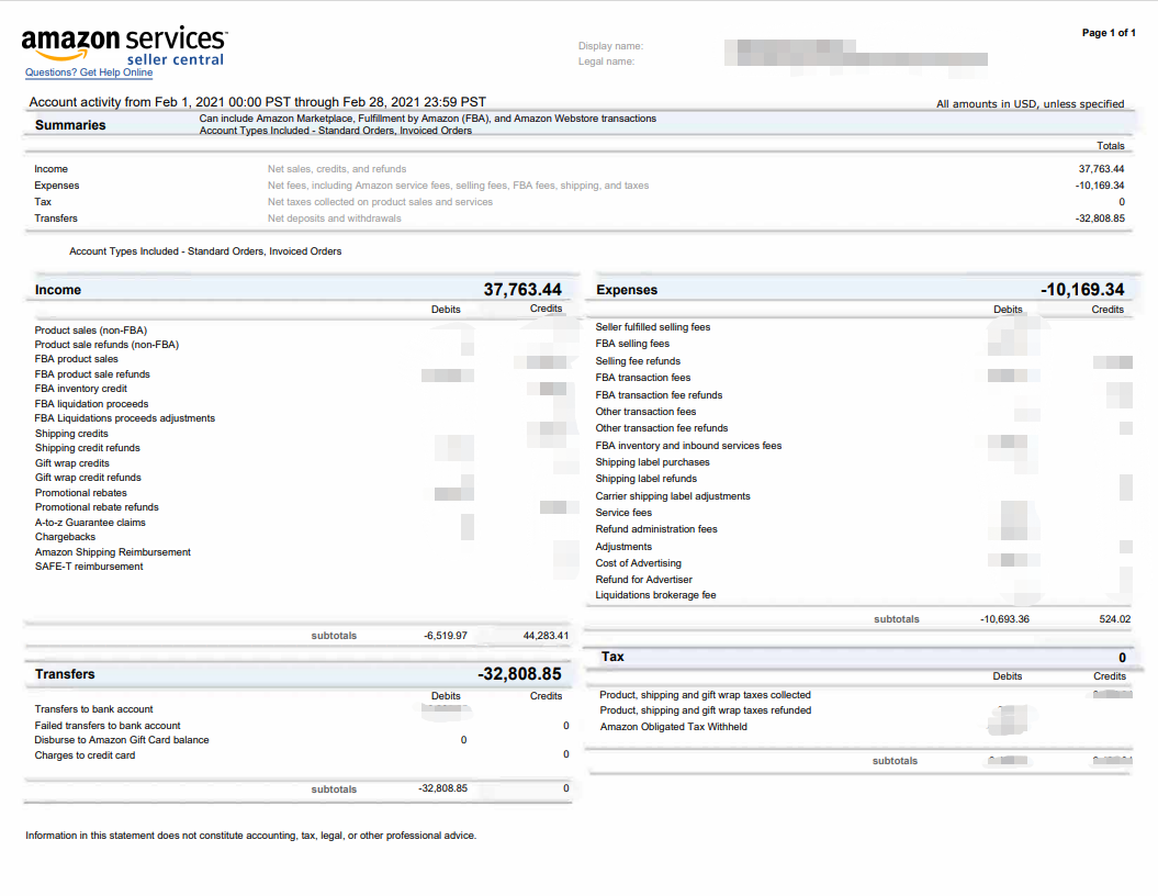 用途:数据和《Amazon Summary Reports》一致,但交易明细表更加明细,包含了各sku的收入、平台费用,可用来计算单品毛利表。