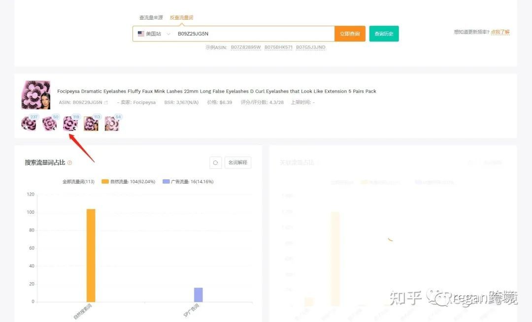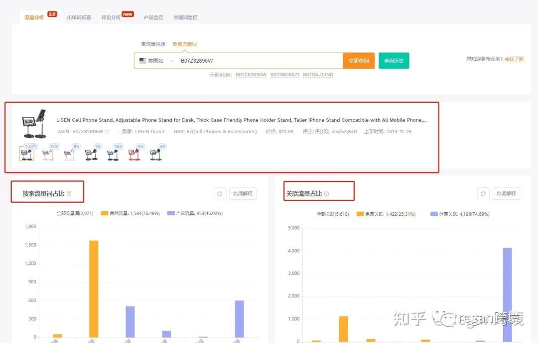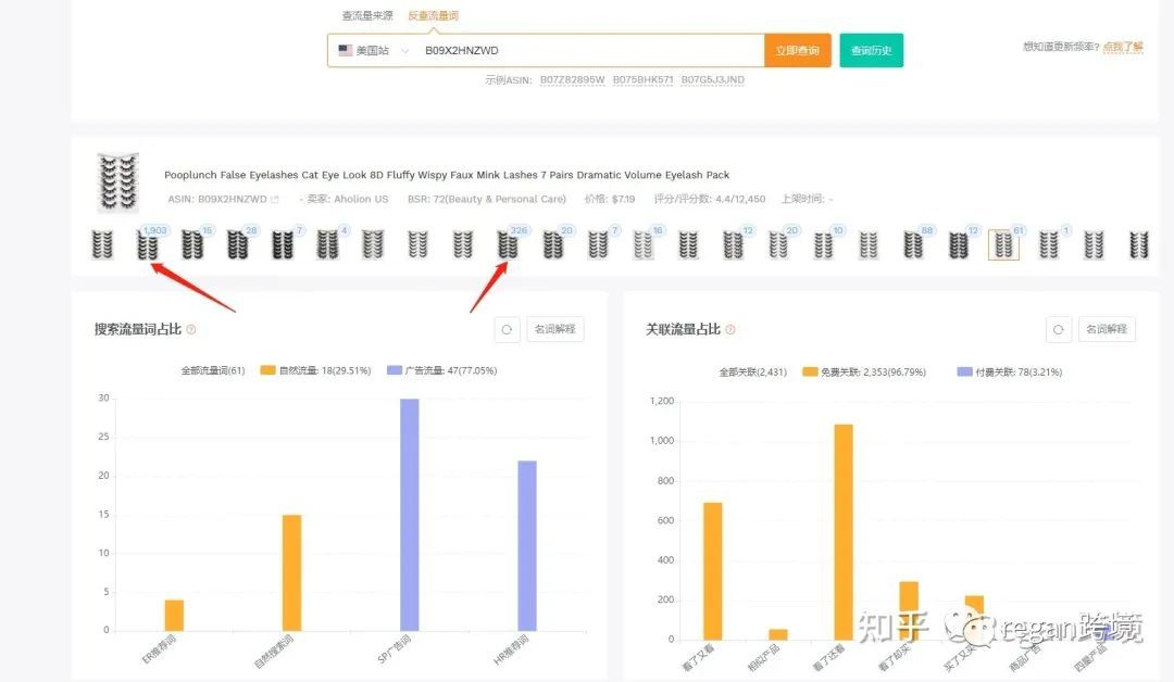 可以得到这个产品的每个变体在亚马逊上面所收录的关键词都有哪些,并且有详细的搜索流量词自然流量和广告流量的占比是多少,还有关联流量(也就是商品页面)上面的流量上面的自然和广告占比情况。