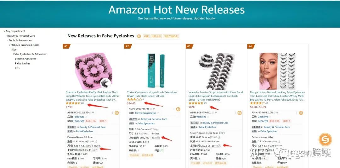 我们可以通过亚马逊的New Releases榜单来找到这个类目里面所有新上架的产品,并且符合这个榜单的新品都是在短时间内上升幅度比较快,并且也有一定量的关键词,这些新品的关键词很有可能是比较有不错机会的关键词,大部分都是比较不错的流量词,我们完全可以进行借鉴。