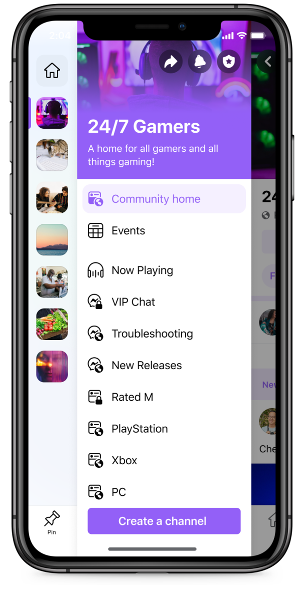 如上图所示,每一个群组下将会有一个菜单,菜单中将会包括频道、Messenger 对话以及群组内的事件。