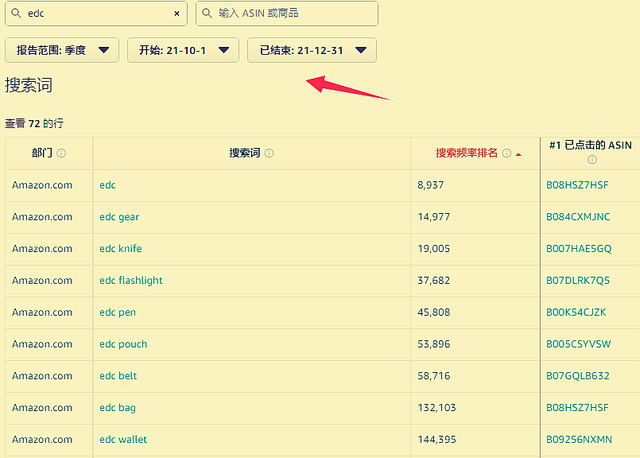 图一是去年旺季10-12月的数据核心关键大词:edc是8937图二是今年开年1-3月的数据核心关键大词:edc是7646关于品牌分析的使用方法,请看:亚马逊上你可能忽视的选品,运营方法!