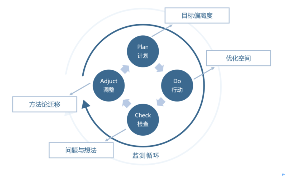 是给 PDCA 循环,再套上一层监测循环,像这样: