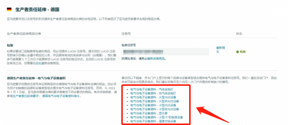 第二步:根据自身产品选择对应注册类别,若不清楚产品类别可在注册证书中查看,也可在WEEE官网查询;