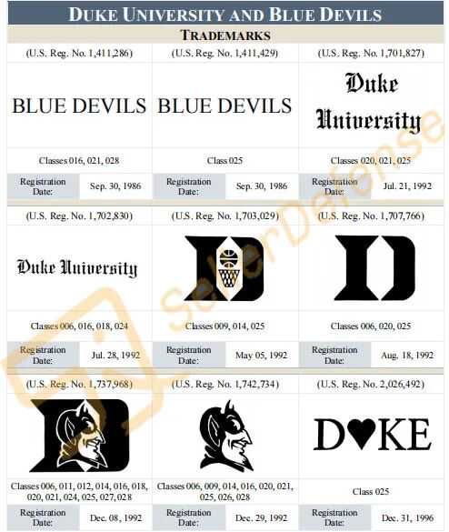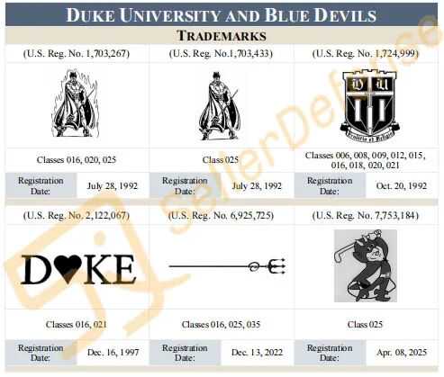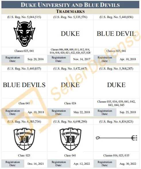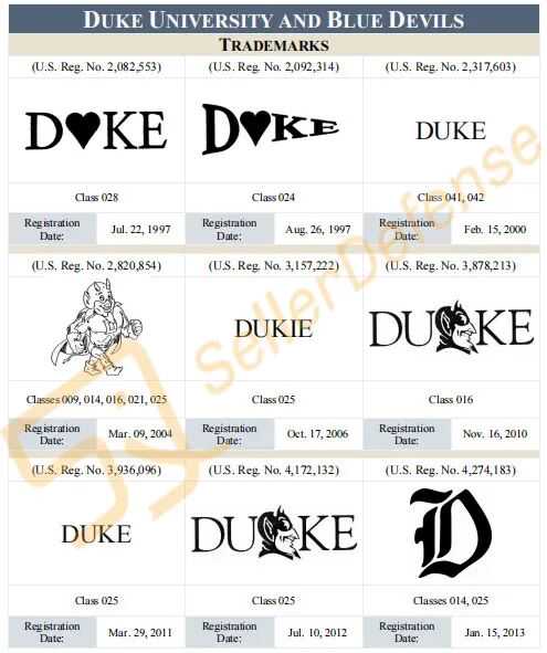 原告 Duke University 成立于1924年,是一所美国顶尖的私立研究型大学。作为大西洋海岸联盟 (ACC) 的成员,杜克大学以 Blue Devils 蓝魔队的名义参加了 27 个 NCAA 第一级别大学运动队。本案涉及商标较多,请各位卖家注意排查避雷!