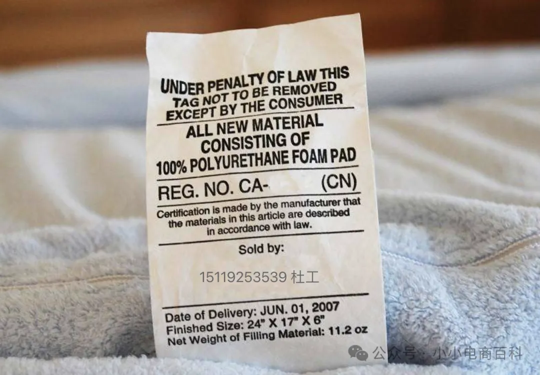 Law Label是美国针对含填充材料的家具、床上用品等产品,强制要求固定张贴的标签,核心作用是公示产品关键信息、实现溯源,保护消费者知情权,同时规范市场竞争,杜绝不合格填充材料流入市场。法律标 核心硬性要求